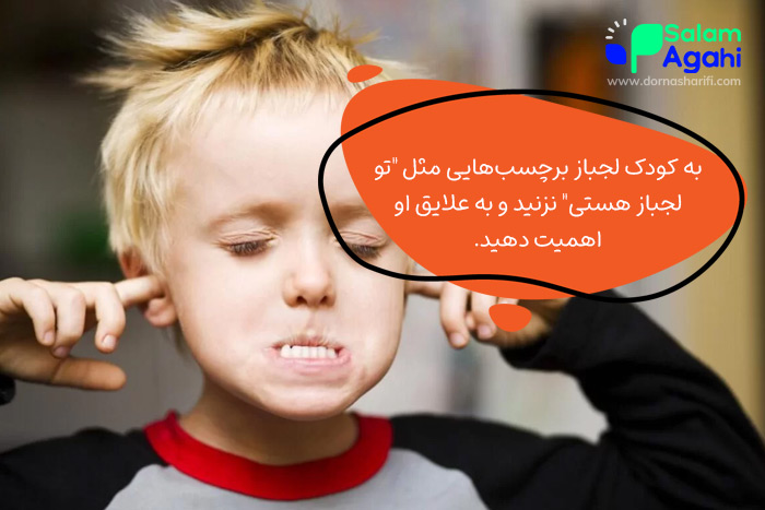 - به او برچسب نزنید که تو بچهی لجبازی هستی، مدام یکدندگی میکنی، همیشه حرف خودت را میزنی و… . چون به مرور، کودک این برچسبهای منفی را درونیسازی میکند و به این باور میرسد که واقعا یک بچه ناسازگار است.